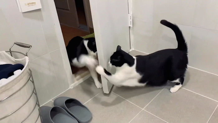 원래 5인 가족이 살던 집이라 집도 크고 방도 많아 영역동물 두고양이가 마리가 충분히 각자의 공간을 확보했던 것이다. 그렇게 서먹서먹 지내길 벌써 1년 반, 이제는 둘이 같이 잠도 자고, 뛰어놀기도 하는 사이 좋은 남매가 되었다. 합사를 하기에 앞서 여러분의 집이 고양이들이 충분히 행복하게 지낼 수 있는 크기를 가지고 있는지에 대해 냉정하게 살펴보길 바란다. 고양이에게 수직공간이 중요하다고 하지만, 수평공간도 매우 중요하다.
