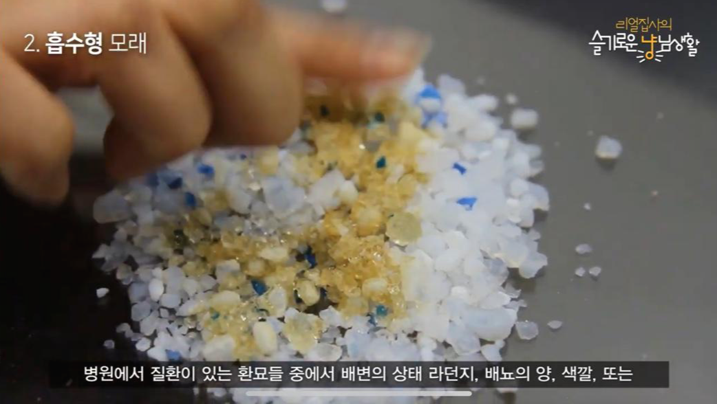 벤토나이트는 생긴건 모래와 똑같지만, 사실은 나같은 문과생이 감히 알 수 없는 뛰어난 과학기술의 선물같은 모래다. 수분을 만나면 바로 뭉쳐서 굳어버린다. 덕분에 초보자도 퍼내는데 어려움은 전혀 없을 것이다. 제때제때 치워주기만 하면 된다.